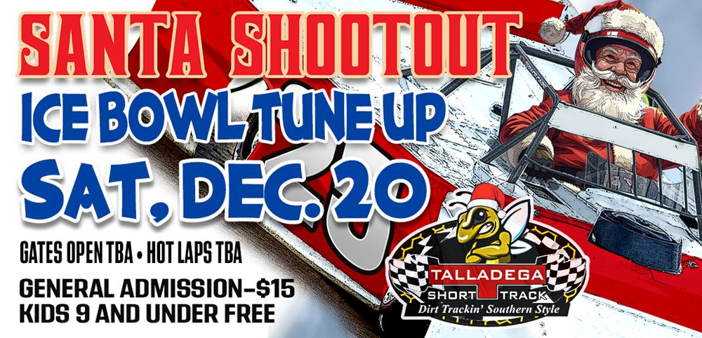SANTA SHOOTOUT – ICE BOWL TUNE UP! Saturday, December 20th, 2025 Talladega Short Track – Eastaboga, AL www.talladegashorttrack.com Get ready for a fes