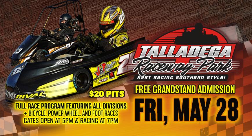Up next for Talladega Raceway Park! Friday, May 28th we'll have a full racing program PLUS Bicycle, Power Wheel, and Foot races!