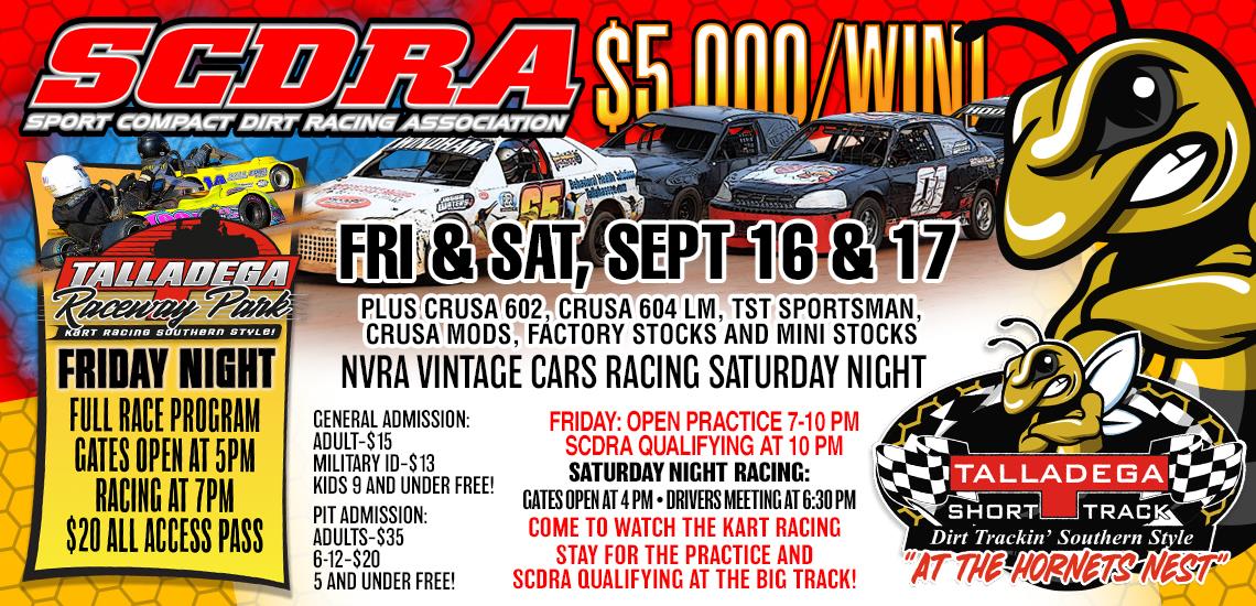 Friday, September 16th will be Open Practice for all divisions and SCDRA Qualifying PLUS Kart Racing at Raceway Park