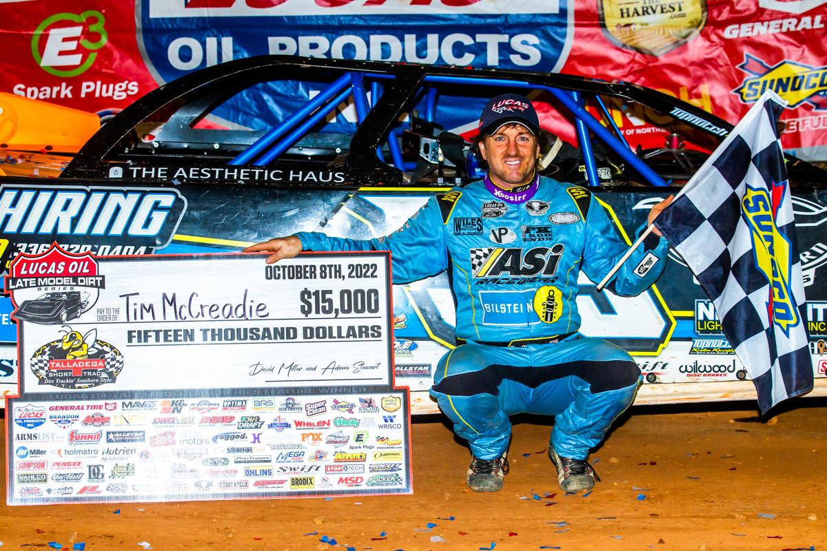 EASTABOGA, Ala. (October 8, 2022) – Tim McCreadie led all the way for his sixth Lucas Oil Late Model Dirt Series win of 2022 on Saturday night at Talladega Short Track.