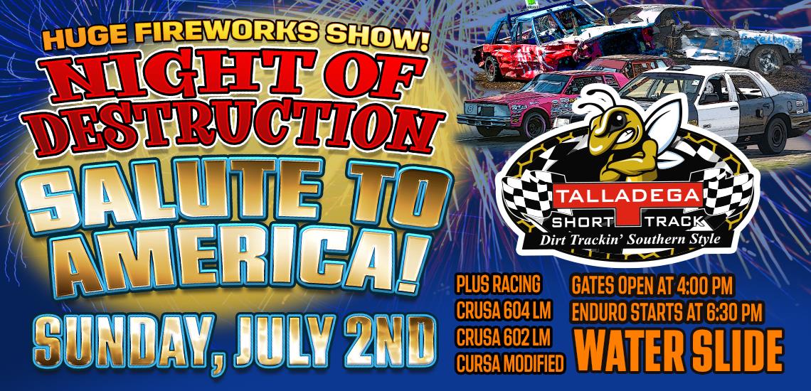 We are back in action on Sunday, July 2nd at “The Hornet’s Nest” for our Salute to America, Night of Destruction featuring CRUSA 604, CRUSA 602, CRUSA Modifieds, Enduro race, and a Demolition Derby!
