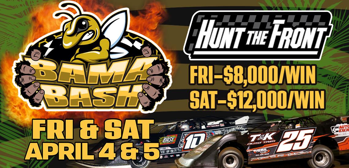 Our next event at TST is the BAMA BASH featuring theHunt the Front Super Dirt Series for two HUGE nights of action - $8,000 to win Friday, April 4th and $12,000 to win Saturday, April 5th!